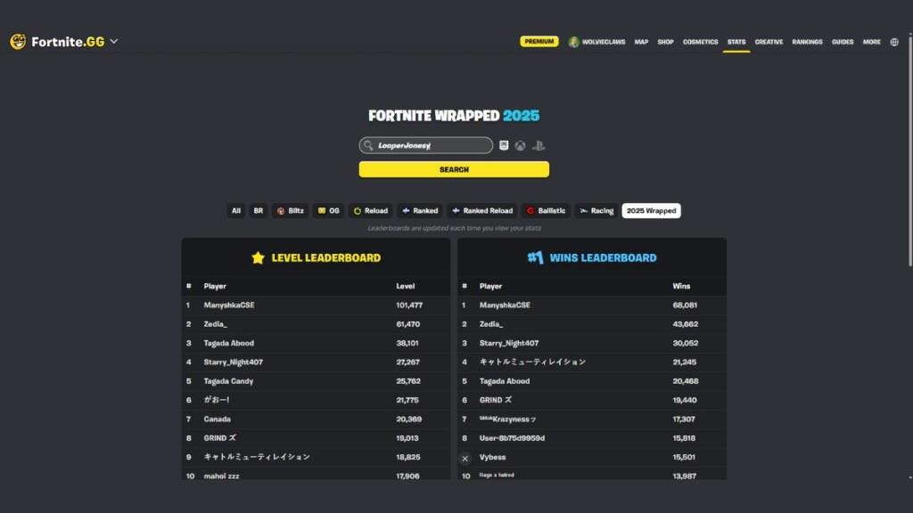 Although Epic Games does not introduce an official version of Fortnite Wrapped, the companion website Fortnite.GG is known to introduce its version of Wrapped each year. In 2025, as well, you can head over to their Wrapped page or navigate to it from the stats menu.