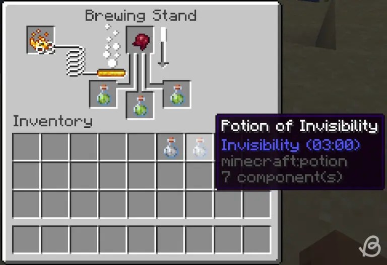 - Brewing Stand: The brewing stand is the central utility block used for Minecraft brewing and can be found in villages or made using a Blaze rod and three Cobblestone blocks.