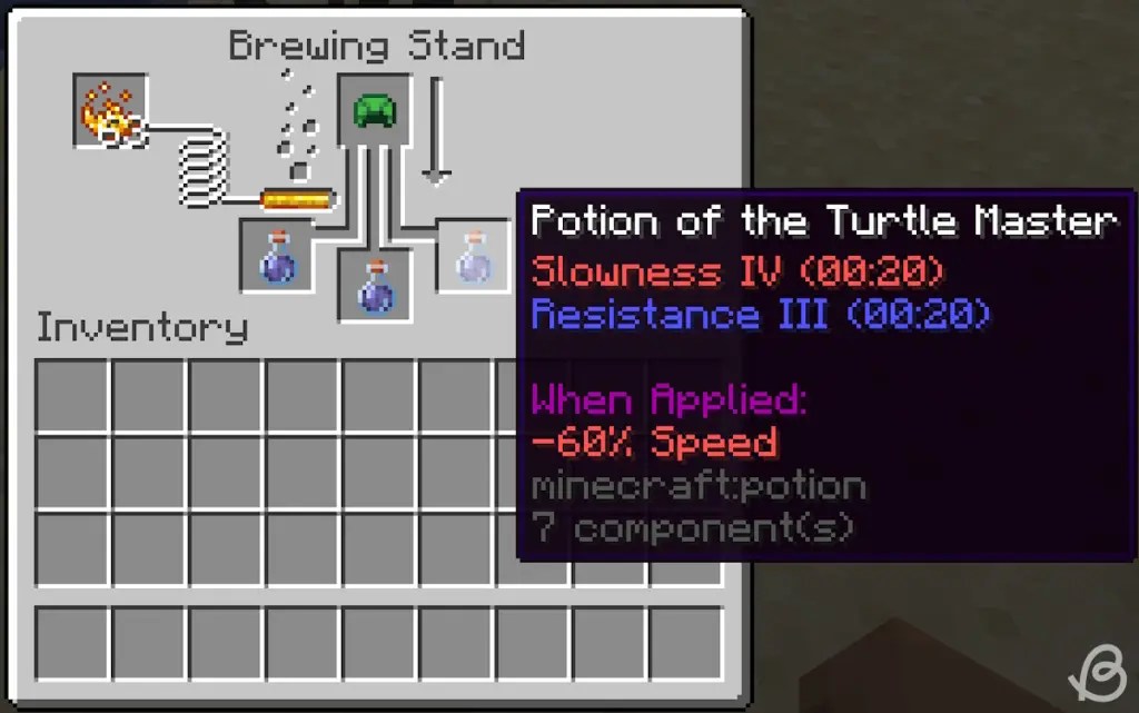 - Recipe:Turtle shell, awkward potion, and blaze powder