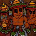 Obby-heavy: Los Burritos behind gray bunker via green ledge jumps; Los Chihuaninis through red LED building gap to taco icon room.