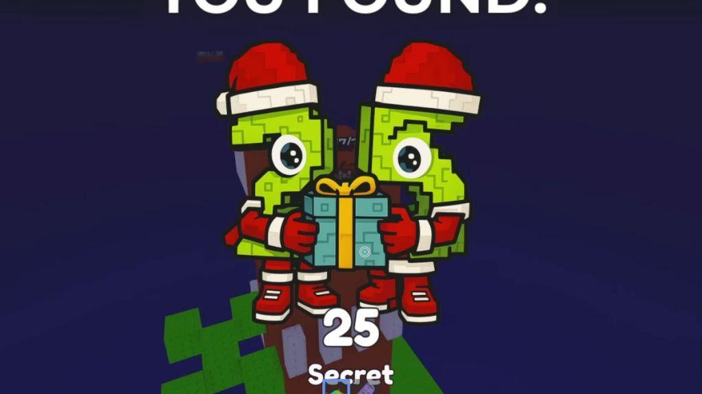 25 is another one of those Secret brainrot, which is very hard to obtain. Find any Christmas gift below the trees, on top of the edges. Interacting with them will lead you to a secret area. There will be a large tree with platforms popping out. Jump across the platforms to reach the top of the tree, where 25 will be waiting for you.