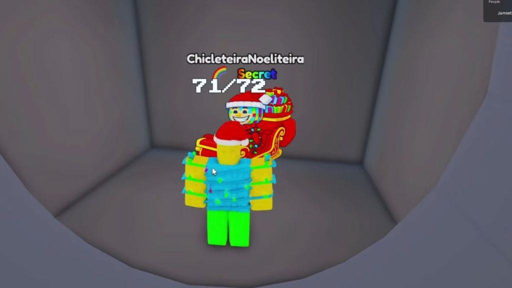 You will see a TNT spot at the centre of the map, right where the green tower is located. Use a TNT at that place to open the underground base. Get inside and turn on the elevator. While the elevator is going up, you’ll notice Chicleteira Noeliteira inside a hole in the wall. Get in the hole to receive Chicleteira Noeliteira Secret Brainrot.