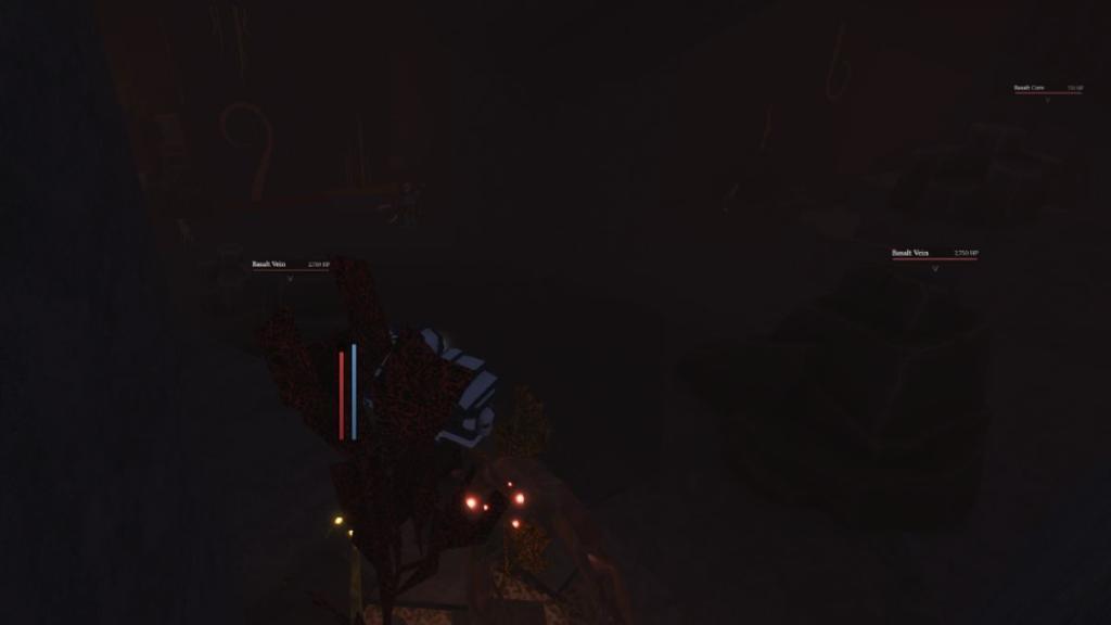 Proceed straight into the cave entrance, breaking initial Basalt Cores to reveal Veins-mine 2-3 clustered nodes at once in this pocket for peak efficiency.