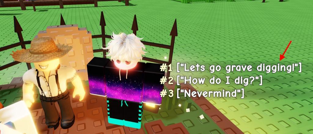Interacting with the new Grow a Garden Scream-ven NPC at the Grave Digger event area will display three dialogue options. Choose the first one that says “Lets go grave digging,” and a 5×5 grid of 25 squares with skeleton hands will pop up on the screen.
