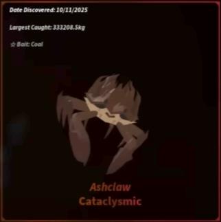 Once you have a decent rod, you can focus on maintaining proper conditions to catch this creature. The Ashclaw in Fisch has no season, weather, or time preferences, with the Coal bait in Fisch being its favorite.
