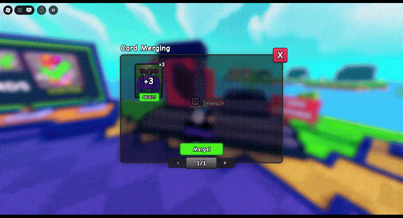 To be able to get better stats on a card, you can merge the same type of cards in Plants vs Brainrots. The card merger is available on the center island in the game. To merge cards, you must collect three of the same cards. Once you have it, go to the merger station and press the E key. Now, click the cards you want to merge and click the green Merge button.