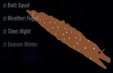 | Fish | Rarity | Bait | Weather | Time | Season |