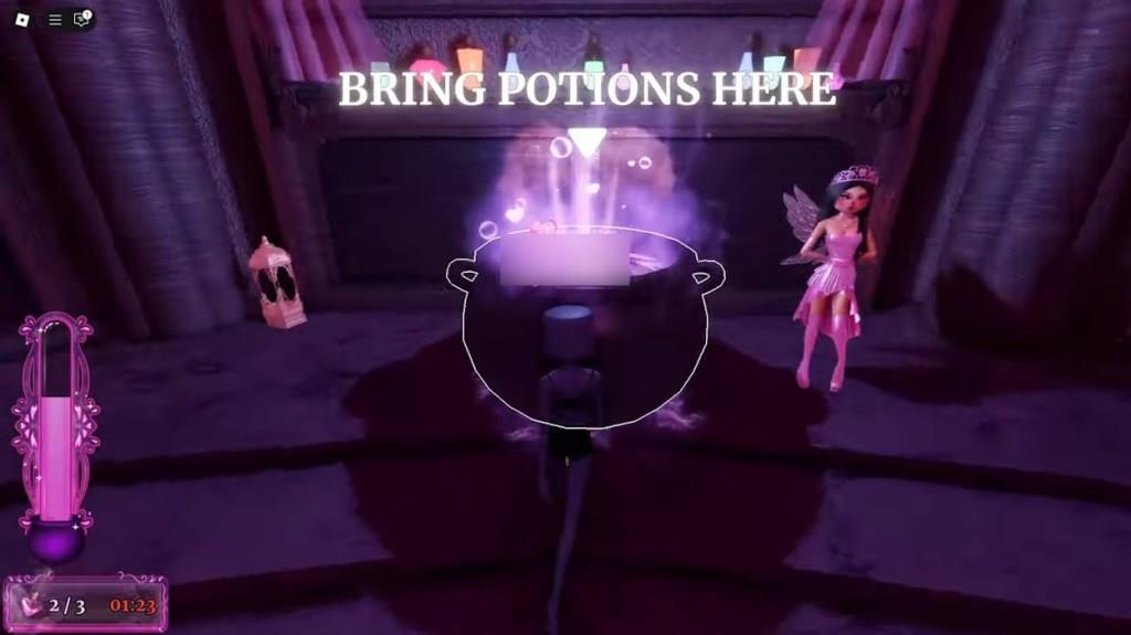 You must brew and submit all three potions within the designated time to complete this task. The amount of potions to be crafted increases with more players, with three per head. Keep checking the timer on the bottom left of your screen, as failing to do the task within this time will make you restart the task from the lobby. Yeah, unlike getting free outfits using Dress to Impress codes, doing the quests can take a lot of grinding. So, time is crucial here.
