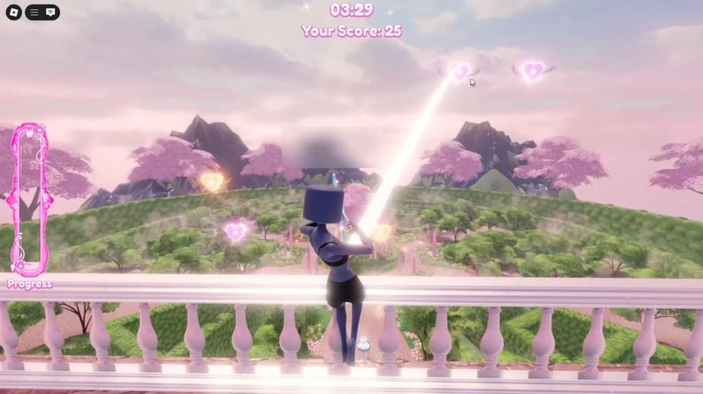 After completing the shooting game, you’ll be teleported to the garden where you must shoot a Golden Heart-shaped lock to open the Fortress portal.