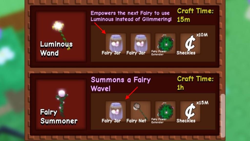 - Luminous Wand: 2x Fairy Jar, 1x Fairy Power Extender, and 10 Million Sheckles