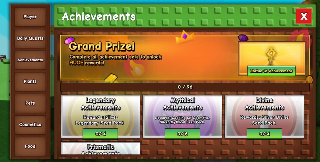 That said, here are the achievements that you’ll need to complete, from common to prismatic, in Grow a Garden: