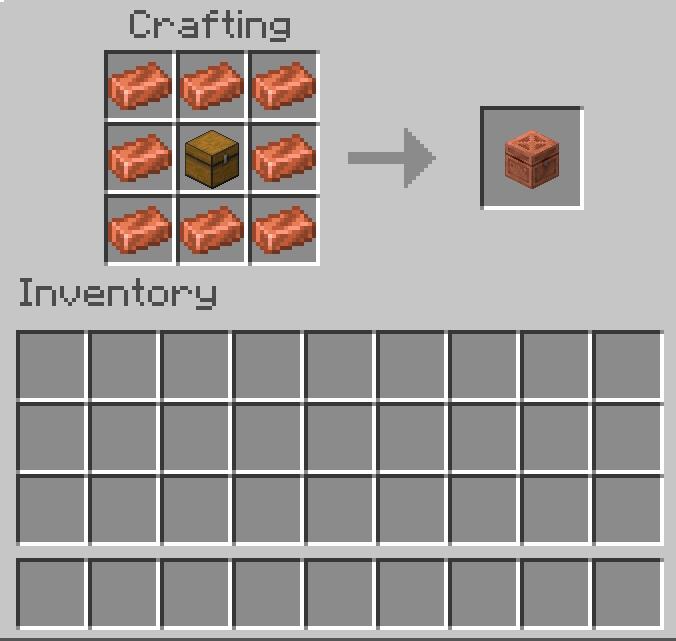 - Now place the regular chest in the center cell, and fill the surrounding cells with the 8 copper ingots.