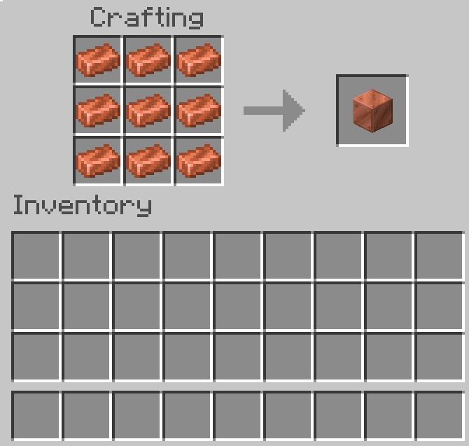 In order to make a single copper block, you will need 9 copper ingots in Minecraft. Furthermore, to get those copper ingots, you need to melt raw copper in a Furnace or a Blast furnace, using any fuel. Remember, a single raw copper can give you a single copper ingot in the game.