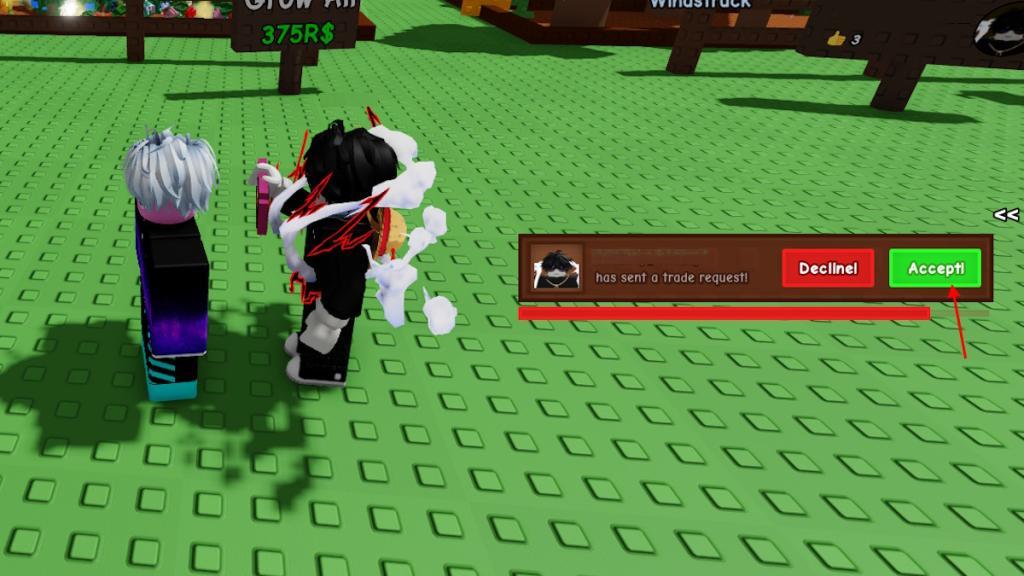 - After accepting the request, the Grow a Garden trading hub window will open.