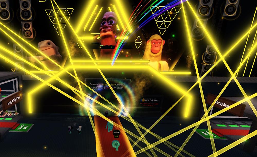 During the Brainrot concert, Tung Tung Sahur, Tralalero, and Chimpanzini take over. The dark room fills with laser lights and loud music. Players dance to the rythm and brainrots on the belt gets the Concert trait.
