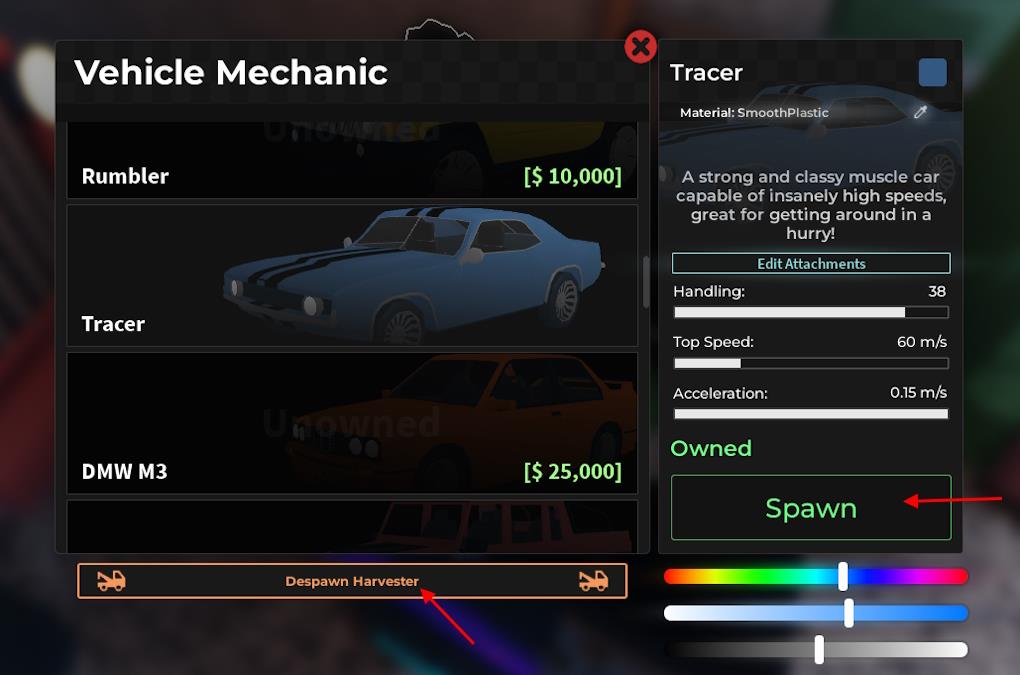 Once you unlock a vehicle, select the vehicle you own and click the Spawn button. You can also use the Despawn button below the car list to remove your vehicle from anywhere on the map.