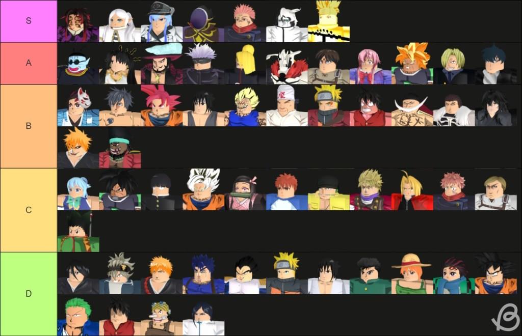 | B-Tier | Humble-Swordman (Selection), Shirtless Magician, Super God Koku, Kosuke (TS), Vegu (Mind), Ramen Grill-Master, Zaruto (Sage), Ruffy (Lobby), Whitestache, Kujo, Nighty, Ikki (HalfMask), Blackstache |