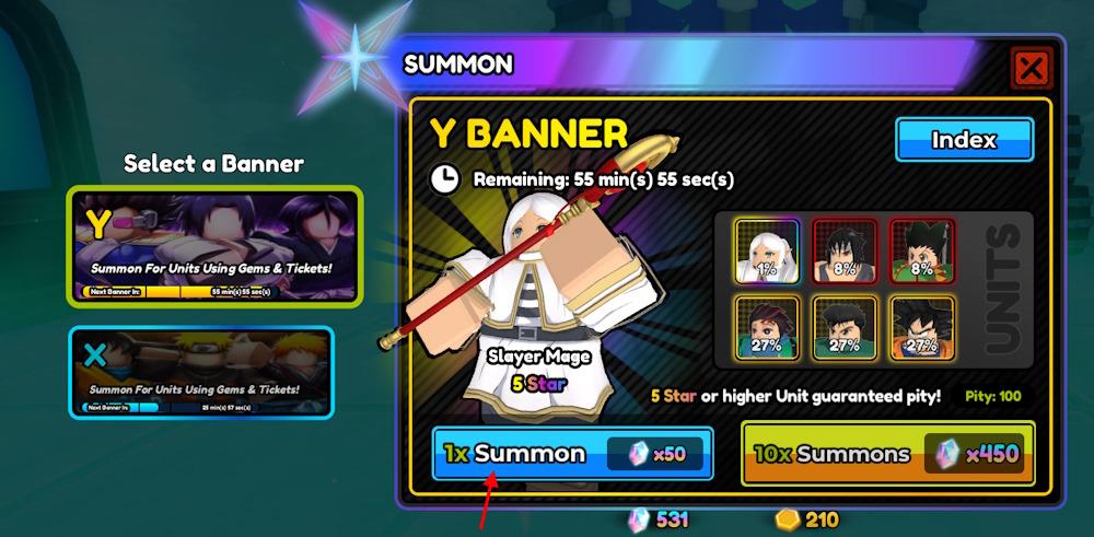 The majority of the available units in ASTDX are only available through summoning. Luckily, you can use the All Star Tower Defense X codes to get a lot of gems, which you can use in the summon area. To obtain the best units, you must check the banner and wait for the best units to appear on the index. Once it is there, here is how you can summon units in All Star Tower Defense X: