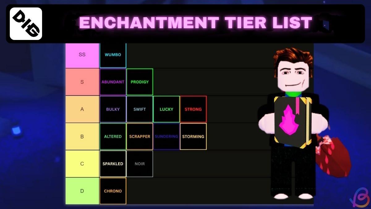 In our tier list, we’ve ranked the enchantments based on how useful they are in enhancing your Dig gameplay. In our testing, some enchantments clearly stand out and help more with progression as compared to others.