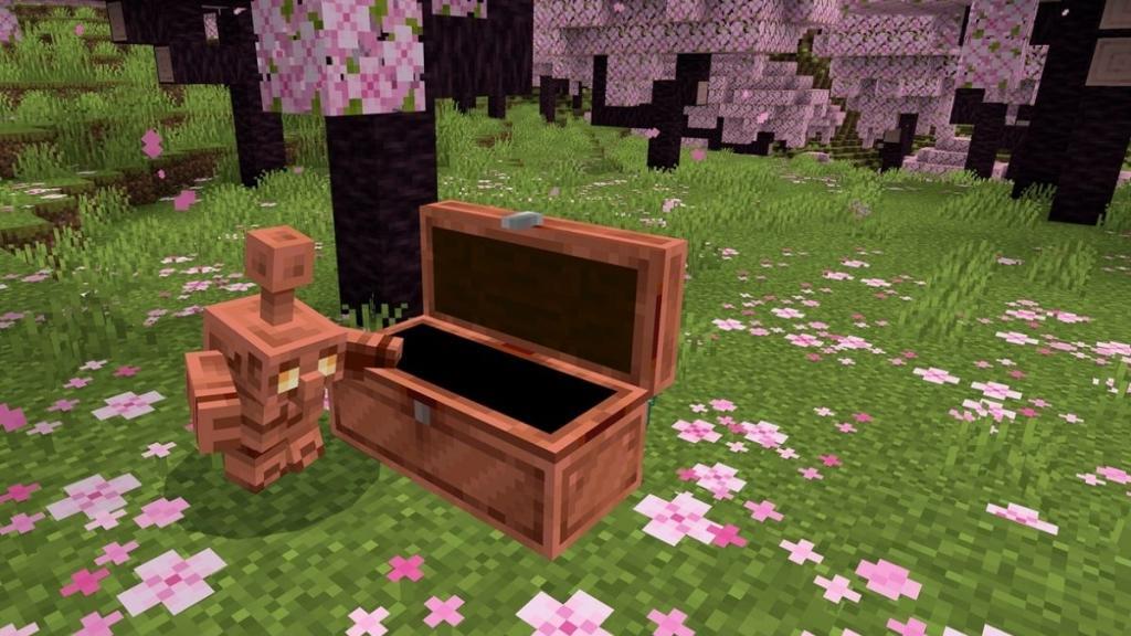 Along with Copper Golems comes the copper chests. These aren’t available the moment you start a new world. Rather, the first copper chests always spawn alongside a Copper Golem, and later, you can pick them up to know their crafting recipe.