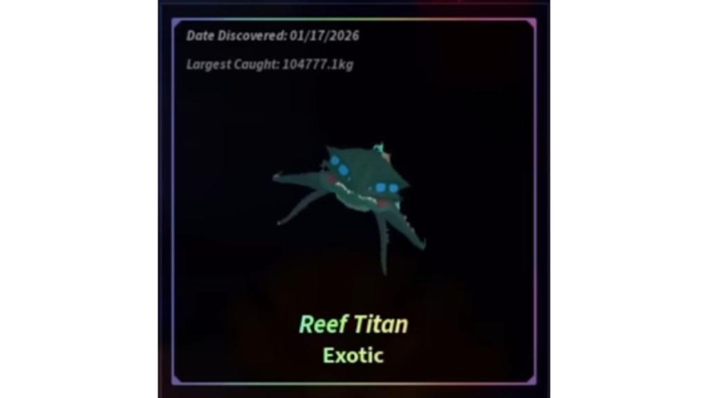 Reef Titan can be found deep in the Coral Basin area of Fisch. This zone is located beyond the main fishing hub and requires players to progress through several ocean routes before reaching it. The creature appears most often in regions with glowing coral formations and clear blue water. Players should use high-tier fishing gear or bait suitable for large aquatic creatures to increase their chance of spotting it. Visiting during specific in-game weather cycles may also improve the spawn rate.