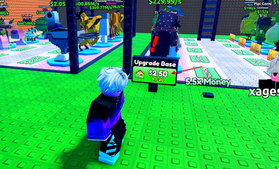 Having more brainrots in your base means you will have more ways to make money fast in Escape Tsunami for Brainrots. To upgrade the base, go near the signboard outside your base. Then, click on the board to complete the process.