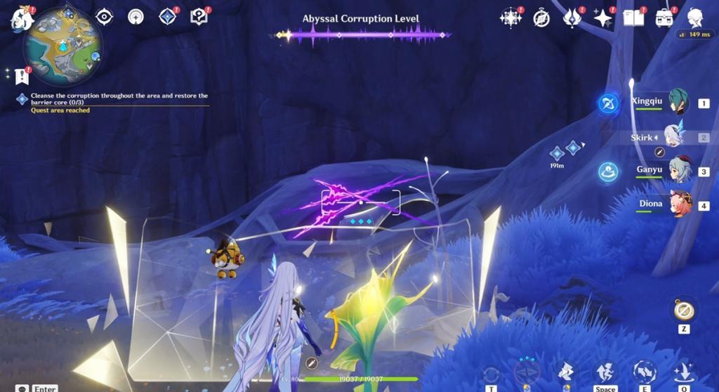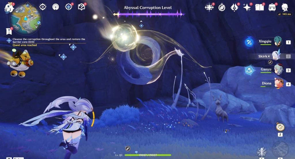 Next comes the tricky part. You will be asked to cleanse the corruption and restore the barrier core in three areas. Although doing it is simple, the process is a bit tricky to understand. Here is how you can restore the three barrier cores: