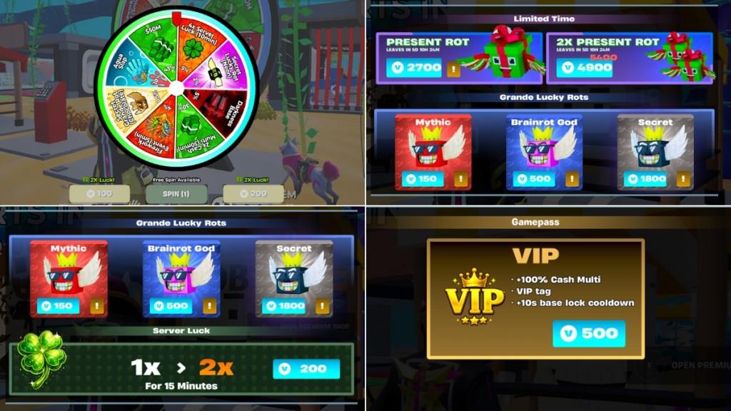 However, after the latest 39.20 UEFN update, Steal the Brainrot added V-Bucks to each of its shop items, as well as to its spin wheel, which many players on social media are Twitter The wheel grants 1 free spin to players every 4 hours. For each additional spin, you’ll need to spend 100 V-Bucks (around $0.99), and for 3 lucky spins, you’ll need to spend 200 V-Bucks (around $1.99).