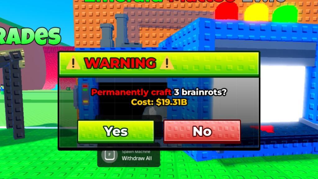 - A warning tab will pop up saying, ‘Permanently Craft Brainrots?’