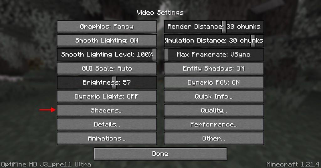 Having installed both the mod and shader pack, it’s time to bring it all together and run it inside Minecraft. So, follow the steps below: