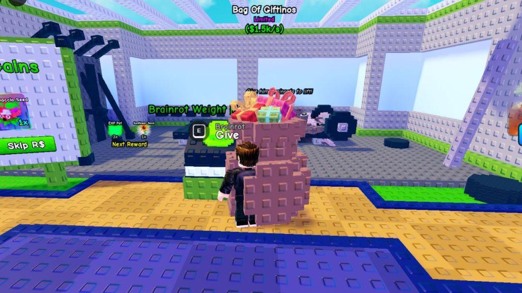 Each time you submit a brainrot, the NPC inside the gym will bench press it. After each submission, the weight of the required brainrot increases, like how we increase the weight we lift in gyms and progress.