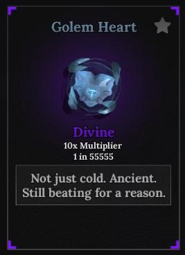 The Golem Heart is one of the Divine drops from the Ice Golem boss in The Forge. To get it, you must complete the first two cult quests. For these quests, you must get the Prismatic Heart from the Prismarine Spider and the Yeti Heart from the Yeti sub-boss. After that, talk to the NPC and start the final cult quest.