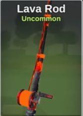 | Lava Rod | Luck: 30% Speed: 2% Weight: 100Kg |