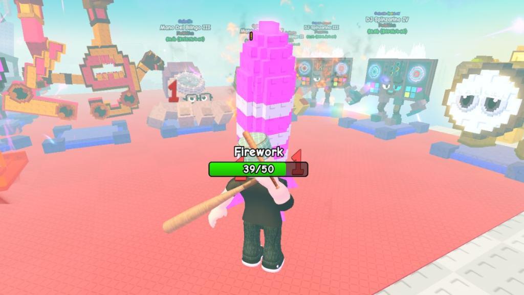 After finding a firework, you need to deal damage to it by hitting it with a bat. You cannot deal damage to the rockets using any other Plants vs Brainrots gears. Each rocket has 50 HP, and you can deal up to 1 damage using your bat. No matter which bat you use, you’ll still do 1 damage per hit. This means you need to hit the rocket 50 times to launch it. Launching each rocket will give you a different set of rewards, which we will discuss below.