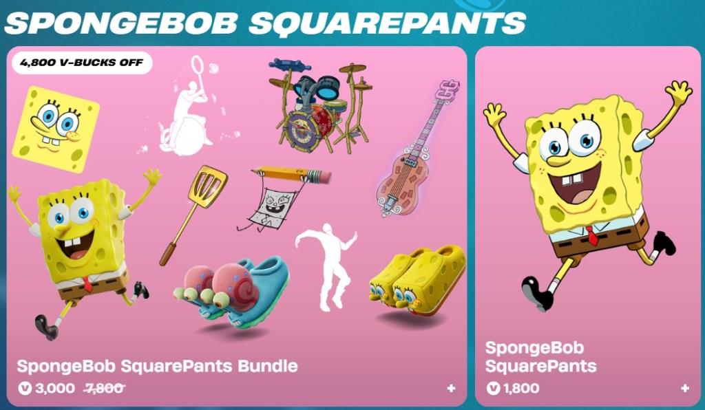 The SpongeBob SquarePants Bundle in Fortnite costs 3,000 V-Bucks.