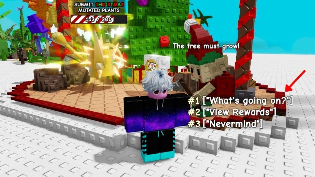 When you first join Grow a Garden after the update, head straight to the center of the lobby at the event area. Here, you can find Larry the Lumberjack NPC and the Christmas Tree seed on top of a small tree trunk beside him.